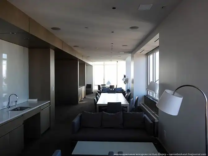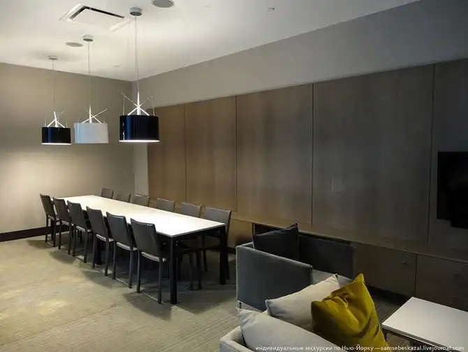 Посмотрим, что еще включено в стоимость. В доме есть вещи доступные только владельцам квартир, а есть доступные тем, кто квартиры снимает. Тут надо уточнить, что до 32 этажа квартиры которые можно только арендовать, а все что выше можно только купить. Так вот, для владельцев есть специальное помещение, где они могут почитать книжку, поработать или посидеть с друзьями. Оно открыто 24 часа в сутки.