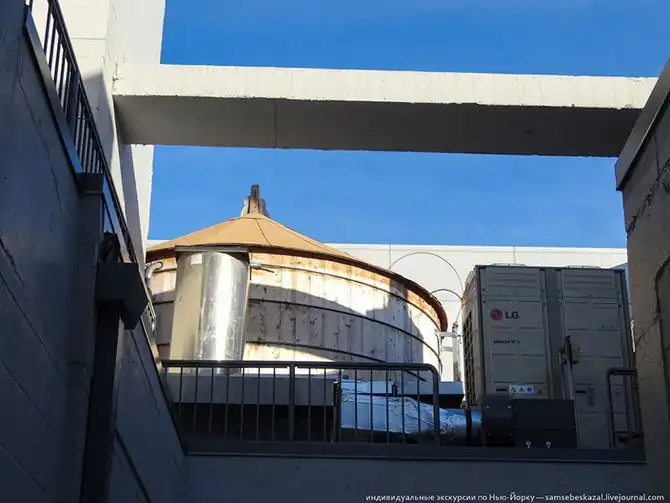 На крыше так же обнаружился классический нью-йоркский накопитель для воды.