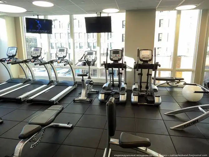 Небольшой тренажерный зал. Есть еще один. Бассейна нет.