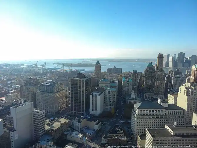 Тут фотографии говорят сами за себя. Нью-Йоркский залив, Статуя Свободы и нижний Манхеттен.