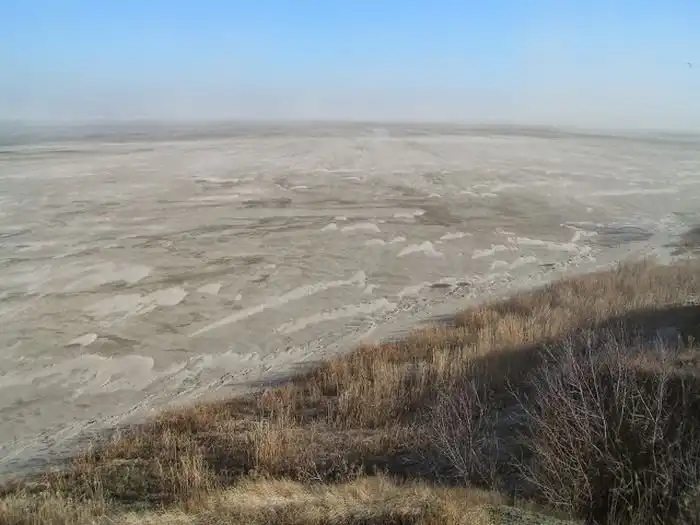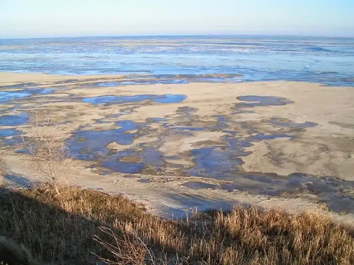 Уникальное природное явление «Ветровой сгон» в Ростове. Из-за сильного многодневного северо-восточного ветра вода из залива полностью ушла в Азовское море, когда ветер стих, вода вернулась обратно.