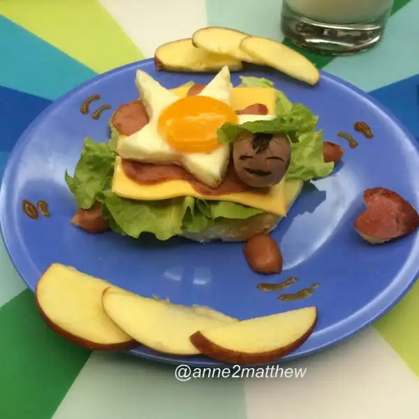 Мама подходит к оформлению завтрака для своих четверых детей творчески - выкладывает еду на тарелках в виде разнообразных сюжетов.