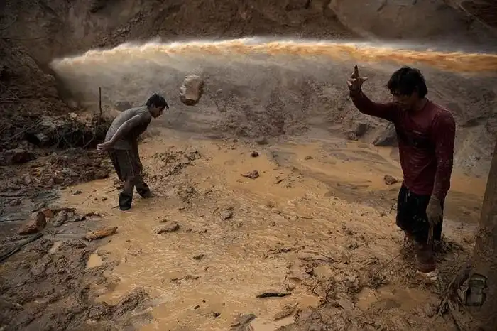 В Перу одним из основных способов выживания бедных слоев населения, коего в этой стране очень и очень много, является нелегальная добыча золота. Ради нескольких граммов благородного металла простым трудягам приходится вкалывать весь день, сдавая потом частицы золота перекупщикам. Ремесленников постоянно преследует местная полиция, ведь из-за варварского метода добычи в стране ежегодно уничтожается 6 000 гектаров тропического леса, а бюджет недополучает порядка 305 000 000 долларов.
