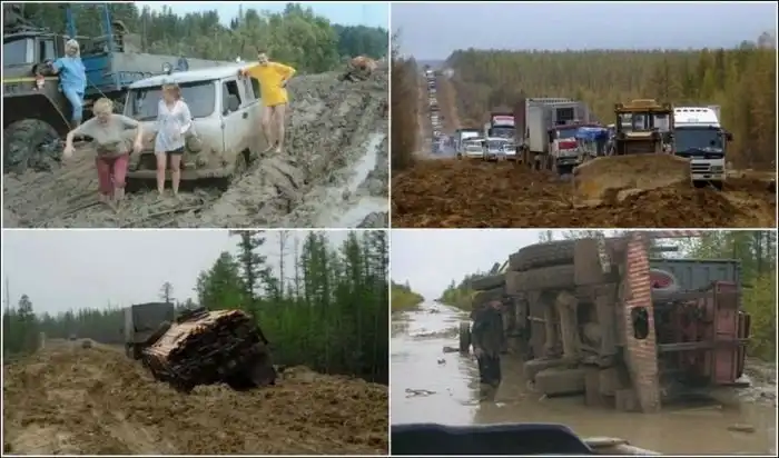 Федеральная трасса А360, также известная под названием «Лена» или Амуро-Якутская магистраль, по праву считается одной из самых опасных дорог в мире. На протяжении 1163 км чередуется асфальт, некое подобие дороги и непроходимое болото, в котором постоянно вязнет огромное количество автомобилей. С 2012 года власти взялись за строительство полноценной дороги, но, судя по всему, появится она очень нескоро.