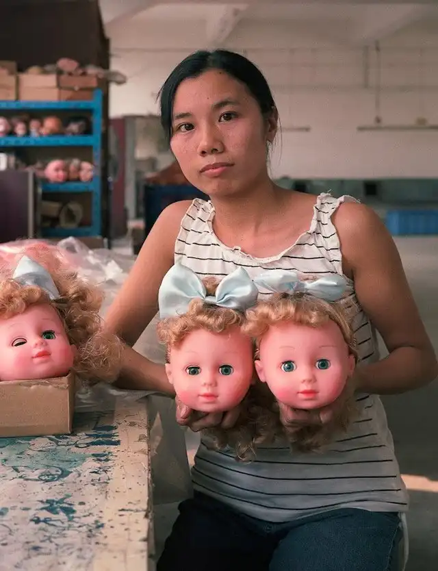 Эти фотографии были сделаны в результате посещения 5 фабрик в Китае. Данная серия фотографий называется “Реальная история игрушек”, автор которой является немец Михаэль Вульф.
