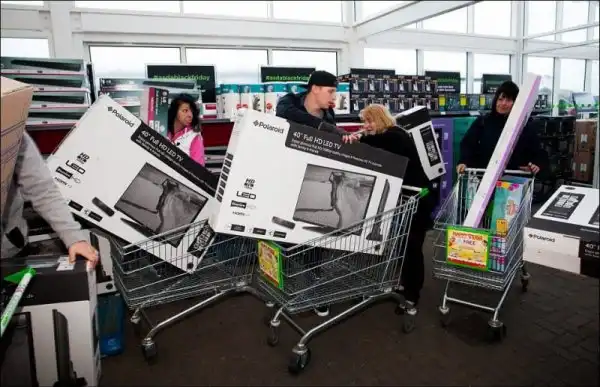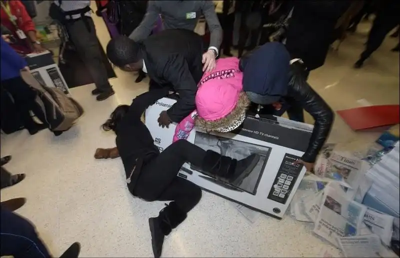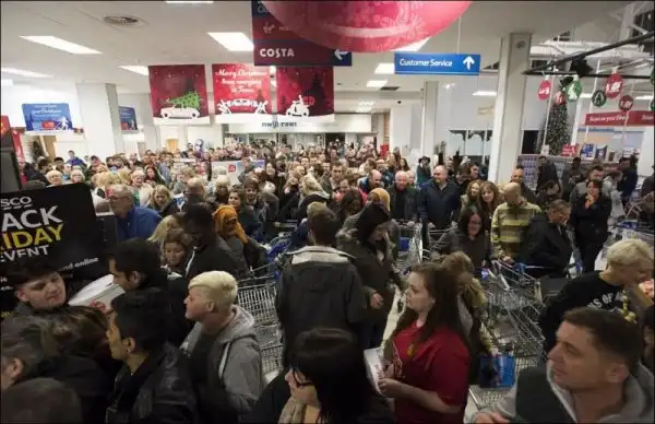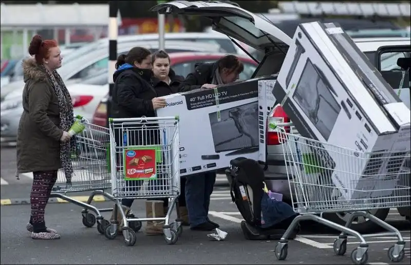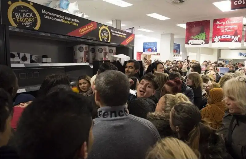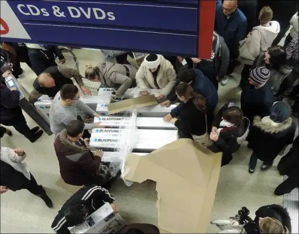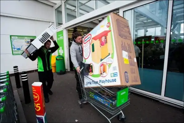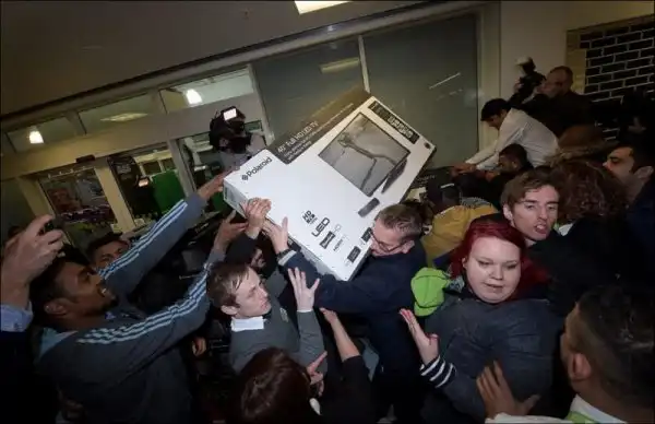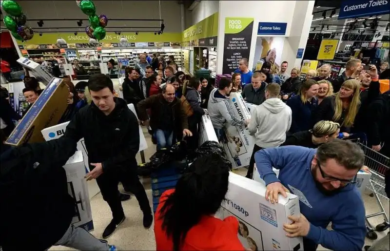 Большая охота за скидками началась. Они там реально дерутся друг с другом. За последний товар с полки могут лишить здоровья — съездить по физиономии или применить газовый баллончик. Один из гипермаркетов в Манчестере даже прикрыли на полчаса из-за боевых действий между покупателями в торговом зале.