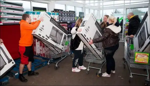 Вот, например, битва за этот телевизор ведется из-за цены, сниженной с 219 фунтов до 139 фунтов.Таких конфликтов десятки. Но в целом, распродажи (если они не липовые как не будем показывать пальцем где) это конечно, круто.