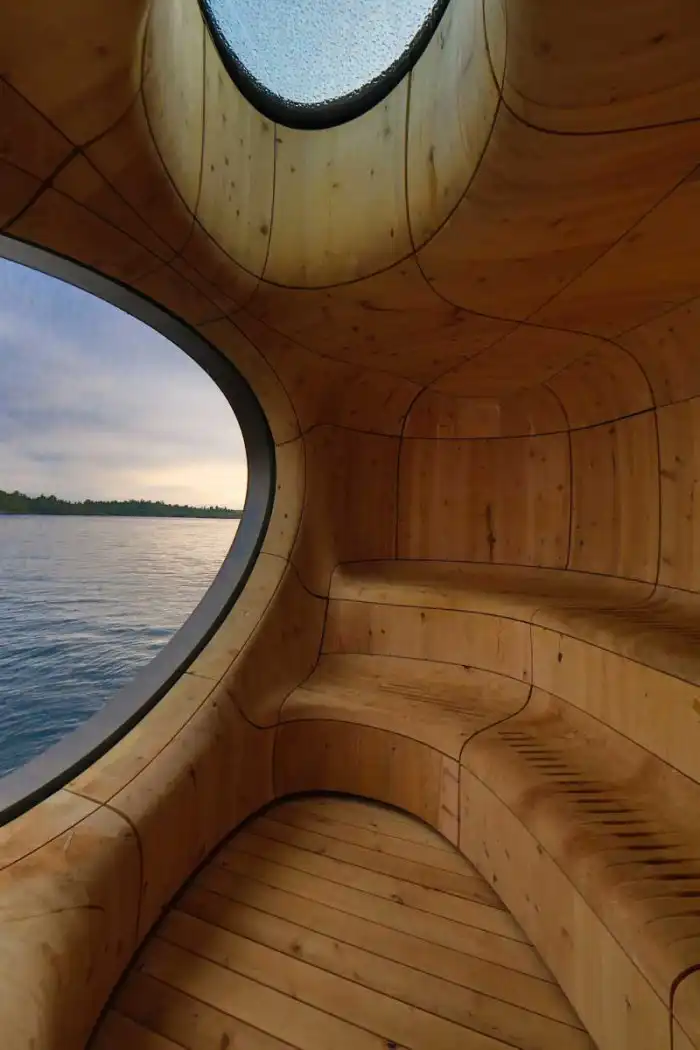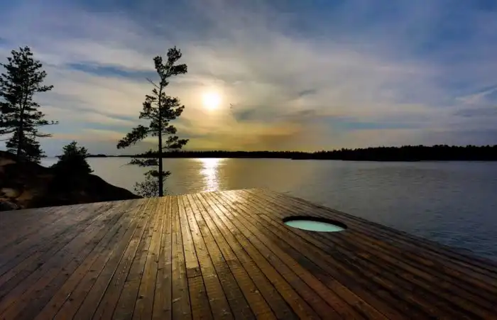 Архитекторы из канадской фирмы Partisans реализовали оригинальный проект сауны, полностью состоящей из дерева. Сразу отметим пару особенностей. Кроме того, что проект полностью деревянный, он интегрирован в скалу и расположен в регионе, богатом артезианскими источниками.