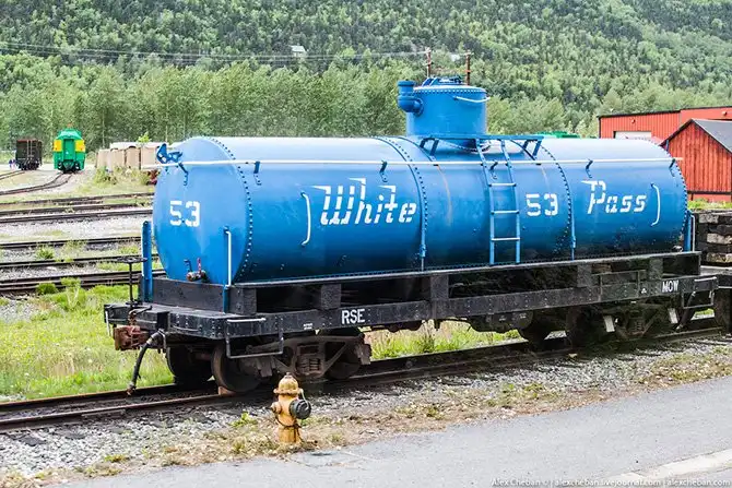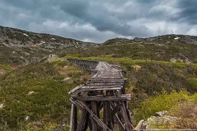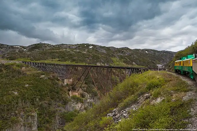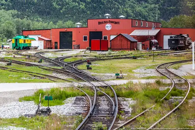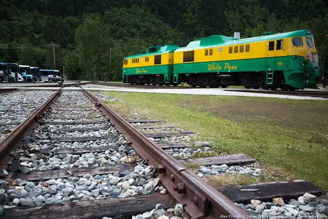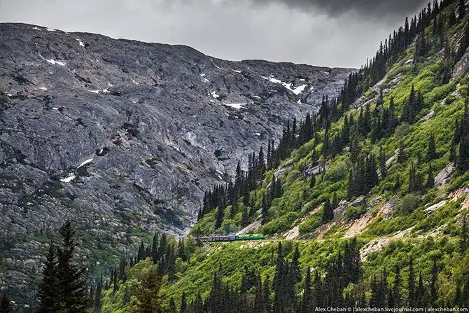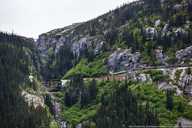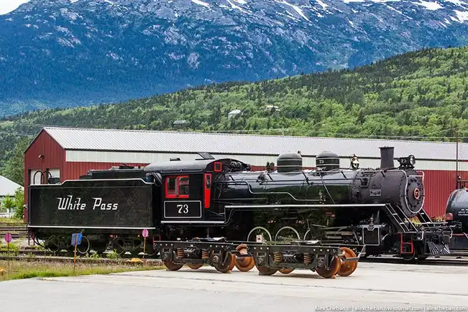 Так появилась White Pass Railways. Самая красивая узкоколейка на Аляске протяженностью 175км. Работы по строительству дороги начались в 1898 году. Трасса проходила по сложному горному перевалу White Pass, но открытие состоялось всего спустя 2 (два) года! Вот, что делает с людьми золото.
