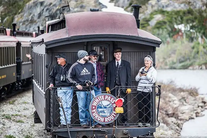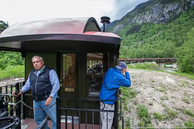 Сейчас на поезде можно проехать к в Канаду, так и до перевала White Pass и назад. Такая поездка занимает 3,5 часа, в течении которых я практически на заходил в вагон, стоя на открытой площадке в между вагонами, раскрыв рот от восторга.