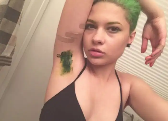 Среди девушек со всего мира набирает популярность новый модный тренд – окрашенные волосы в подмышках. Девушки перестают брить волосы, а после того как они отрастут, красят их в какой-нибудь яркий оттенок. Некоторые даже выбирают один цвет с цветом волос на голове.