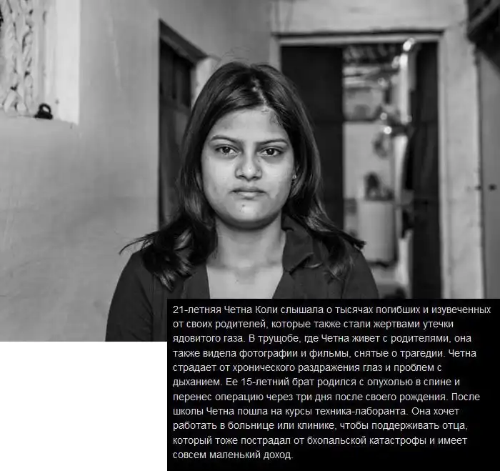 Авария произошла из-за того, что американская корпорация Union Carbide Corporation, владевшая заводом, попросту экономила на технике безопасности. Моментально жертвами аварии стало около 3 000 человек, погибших от ядовитого облака. Еще на протяжении нескольких лет умерло 15 000 жителей. С тех пор жизнь людей в городе Бхопал очень сильно изменилась.