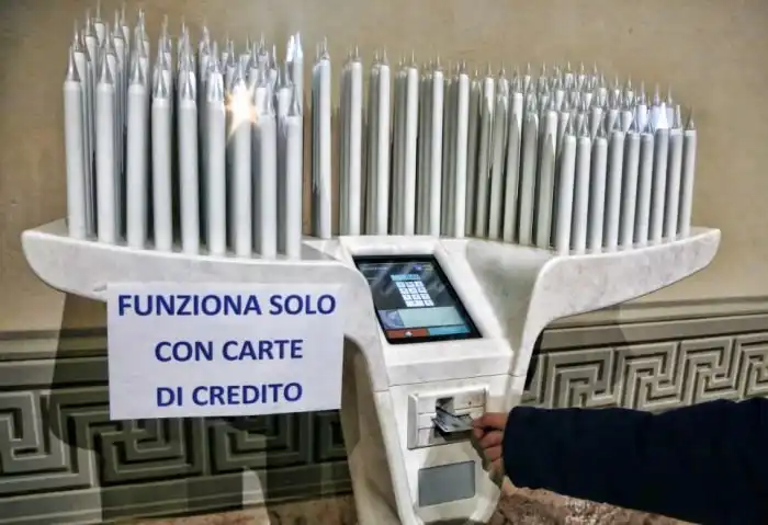 В одной из церквей итальянского города Бергамо появилась новая услуга, теперь каждый желающий может зажечь свечу при помощи своей кредитной карточки через специальный аппарат. Минимальная стоимость услуги 10 евро, если вы хотите, чтобы свеча горела целый месяц, то придется заплатить 420 евро. Из-за возникшего скандала услугу на время заморозили, а представители церкви в свое оправдание сказали, что так они хотели помочь иностранным паломникам.
