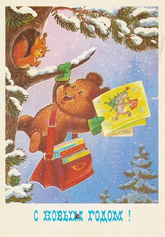 Их покупали заранее штук по 30 и отправляли почтой по разным городам. Помните? Наши мамы и бабушки знали авторов картинок и охотились за открытками с иллюстрациями В. Зарубина или В. Четверикова. Их перерисовывали для новогодних стенгазет и годами хранили в коробках из-под обуви.