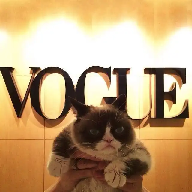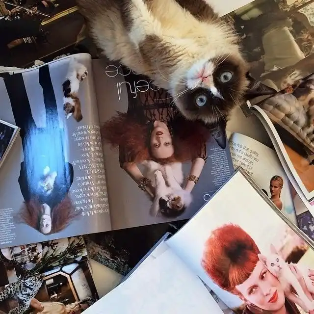 За эти два года кошка с недовольной физиономией стала лицом компании Friskies, украсила обложки журналов New York Magazine и The Wall Street Journal, а также приняла участие в фотосете журнала Vogue. В нынешнем году о животном сняли фильм, где ее озвучивала актриса Обри Плаза. На аккаунты Сварливой кошки в твиттере и инстаграм подписаны более 520 000 и 255 000 человек, соответственно.