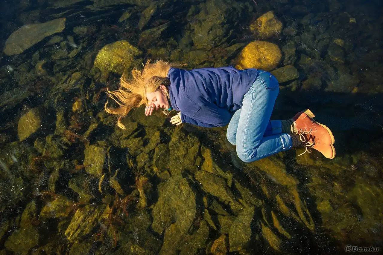 "Стоять на воде... Идти по воде... Как необычно... Сколько чувств возникает, сколько эмоций вибрируют в сердце от того, что понимаешь, что что-то нарушил, какую-то границу и какие-то правила. Потому что никогда не позволил бы себе ходить по воде летом, осенью или весной...