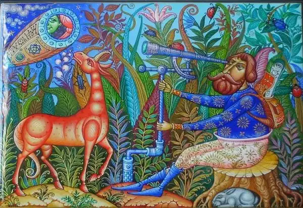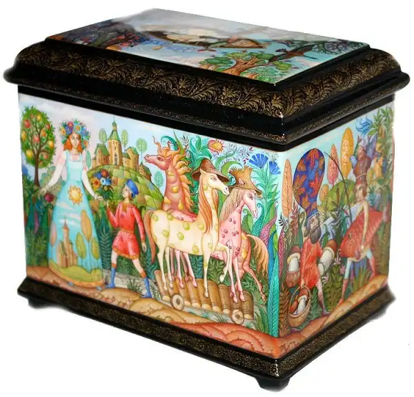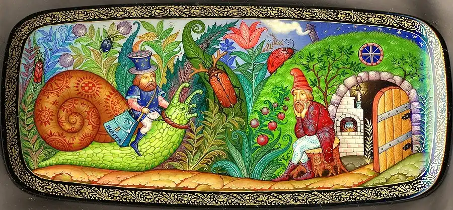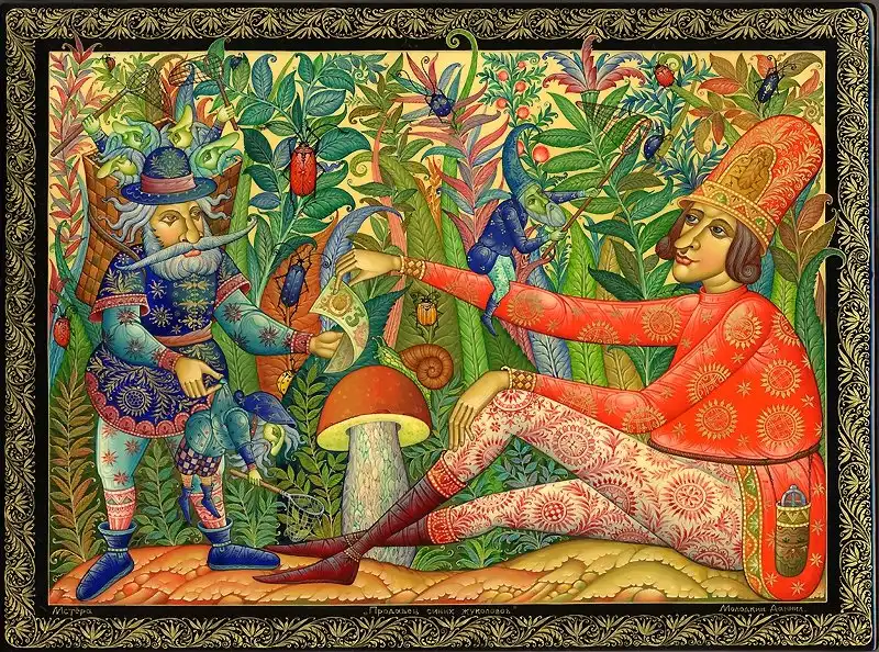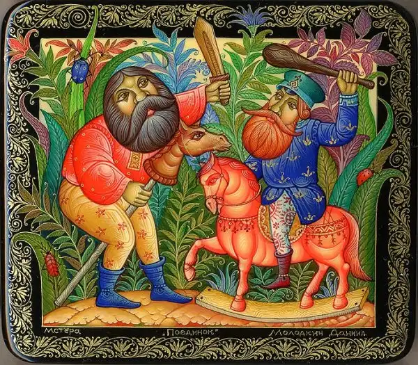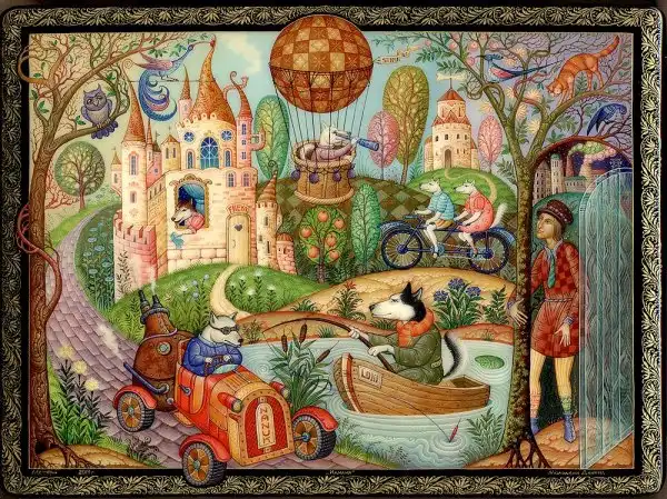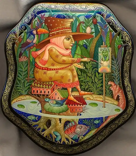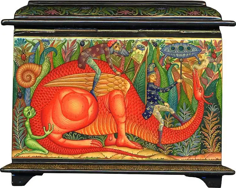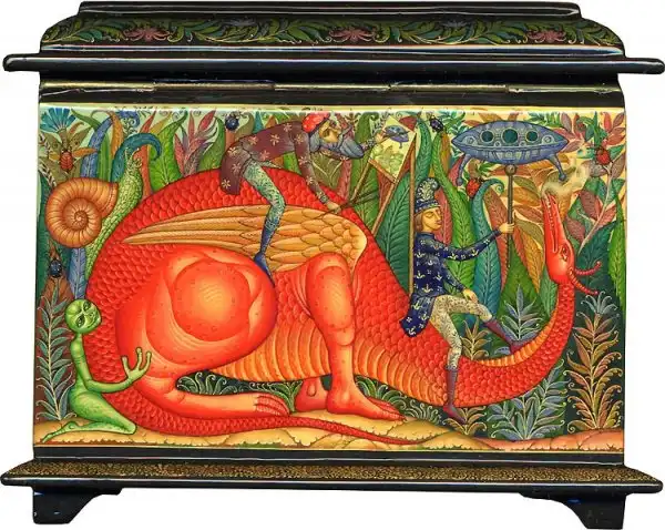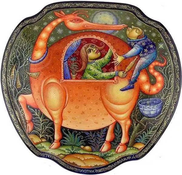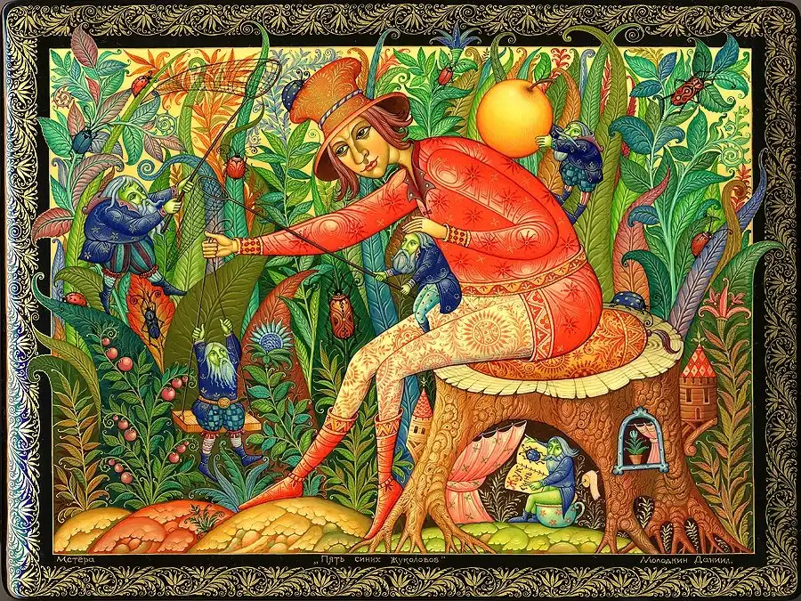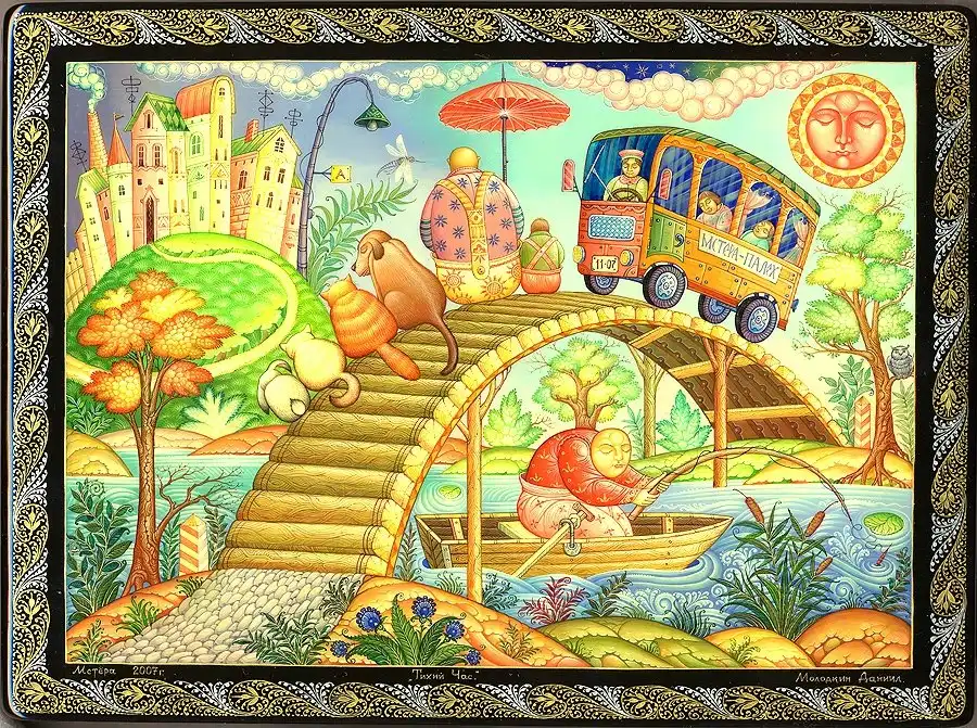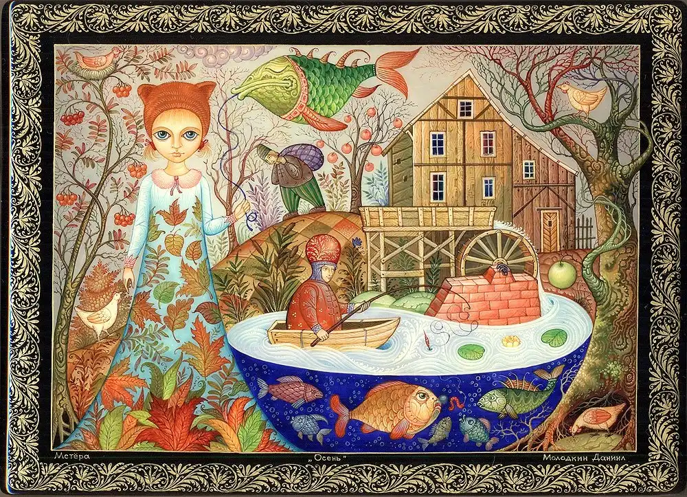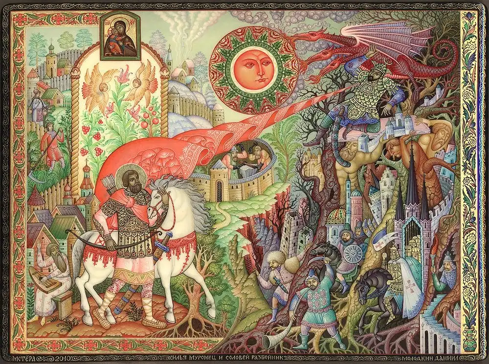 Даниила Молодкин родился в поселке Мстёра в семье художников. Учился там же в известном Мстёрском художественном училище. Работает в палехском стиле лаковой миниатюры. Сюжеты кажутся несколько необычными для русской росписи, но если вдуматься, то первые мастера в Палехе тоже ведь использовали сюжеты современных для себя сказок.