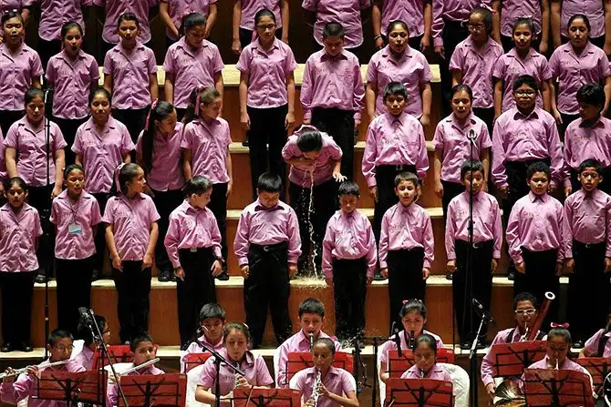 Хор «Sinfonia por el Peru» во время выступления с тенором Хуаном Диего Флоресом в Национальном театре в Лиме. Дети профессионально закончили выступление еще до того, как бедной девочке стало плохо.