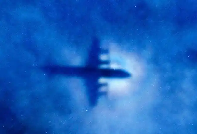 Тень самолета P3 Orion Королевского военно-морского флота Новой Зеландии, который ведет поиск пропавшего без вести Боинга 777 малазийских авиалиний. Рейс MH370 с 239 пассажирами на борту исчез с радаров 8 марта 2014 года. Место крушения самолета до сих пор не найдено.