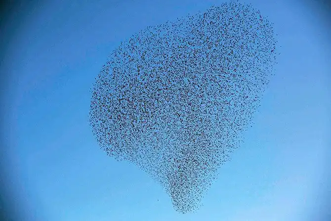 Скворцы во время полета над полем недалеко от города Нетивот на юге Израиля удивительным образом сами выстроились в фигуру, напоминающую сердце.