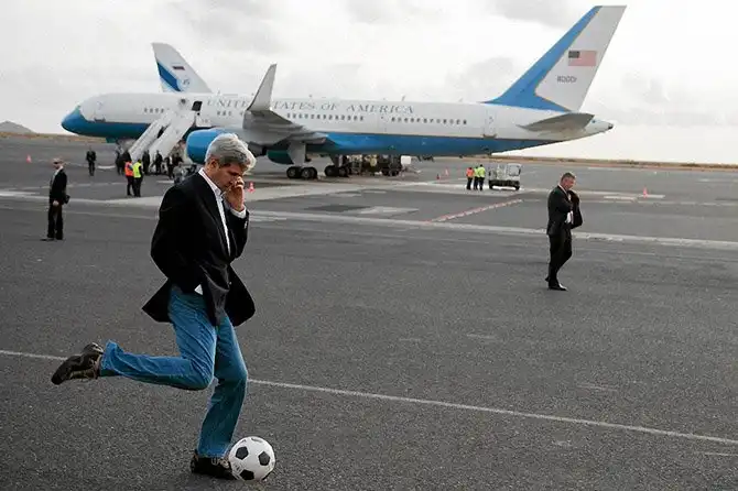 Дозаправка во время перелета в Вашингтон: госсекретарь США Джон Керри решил размяться и поиграть.