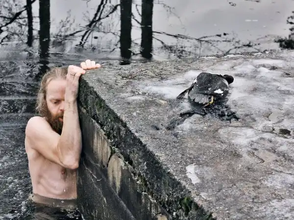 Русский мужик спасает оленя