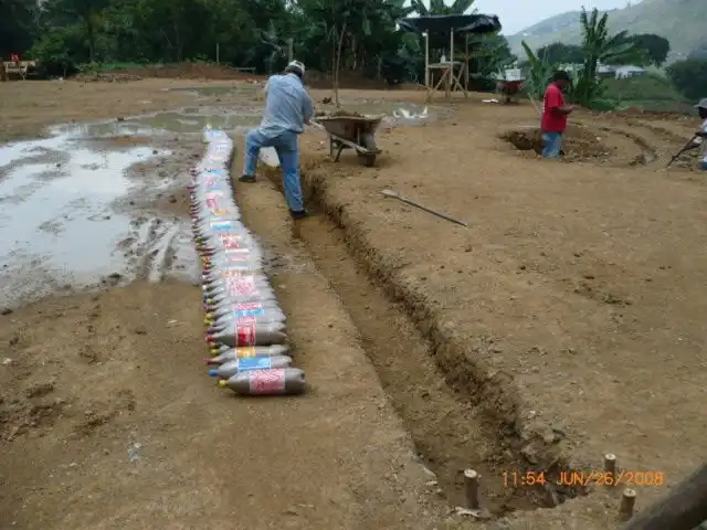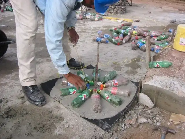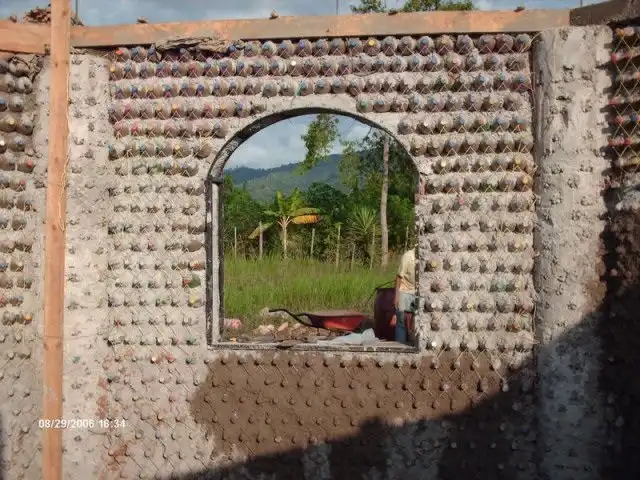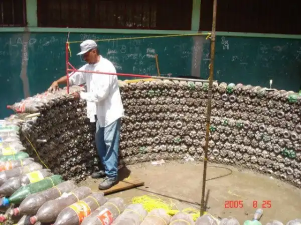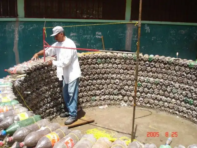 Пластиковые бутылки – отличный материал для создания различных поделок: вазочек, коробочек, подставок. Но данный материал можно использовать и при строительстве таких серьезных сооружения, как гаражи, заборы и даже настоящие дома. Первым решился построить полноценный дом из бутылок немец Андреас Фроес, он же является основателем технологии ECO-TEC. По его технологии было создано более 50 экологических проектов в Колумбии, Гондурасе, Боливии.
