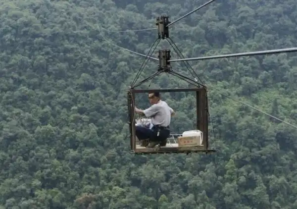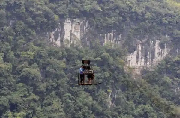 Чтобы добраться до ближайших магазинов и учреждений, жители этой деревушки должны путешествовать приблизительно один километр по канатной дороге.