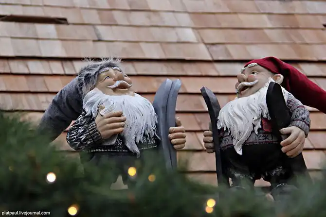 Несмотря на то, что это было самое открытие, народ охотно шел на этот аттракцион. Опять же на склоне крыши все те же гномы.