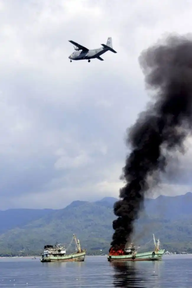 Власти Индонезии выбрали необычный способ борьбы с нелегальными рыболовами. Ловить рыбу здесь можно только при наличии лицензии, однако, далеко не все рыбаки тратят деньги на покупку лицензии. Теперь власти конфискуют у рыбаков лодки и публично взрывают их, чтобы другим не подавно было рыбачить без лицензии. Самих же рыбаков отпускают.