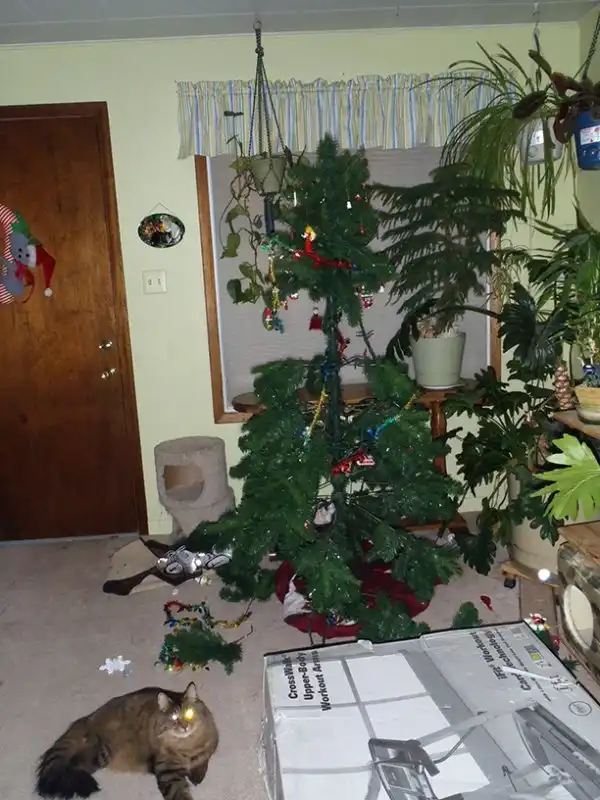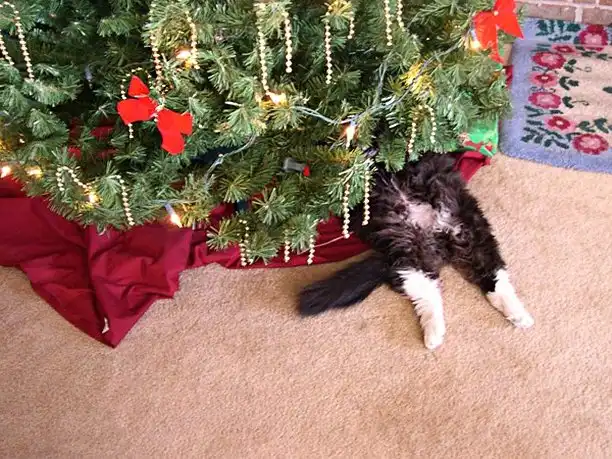 Лучшее украшение новогодней елки - это не шарик, не золоченая шишка и даже не гирлянда с кучей цветных огоньков. Самое незаменимая вещь для украшения новогодних деревьев - кот домашний, одна штука.