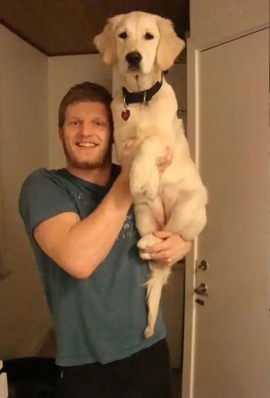 Судя по всему, этот парень последовал примеру известного греческого атлета Милона Кротонского, который в ходе своих тренировок ежедневно поднимал растущего быка, и начал поднимать свою собаку. В итоге вместе с собакой вырос и ее хозяин.