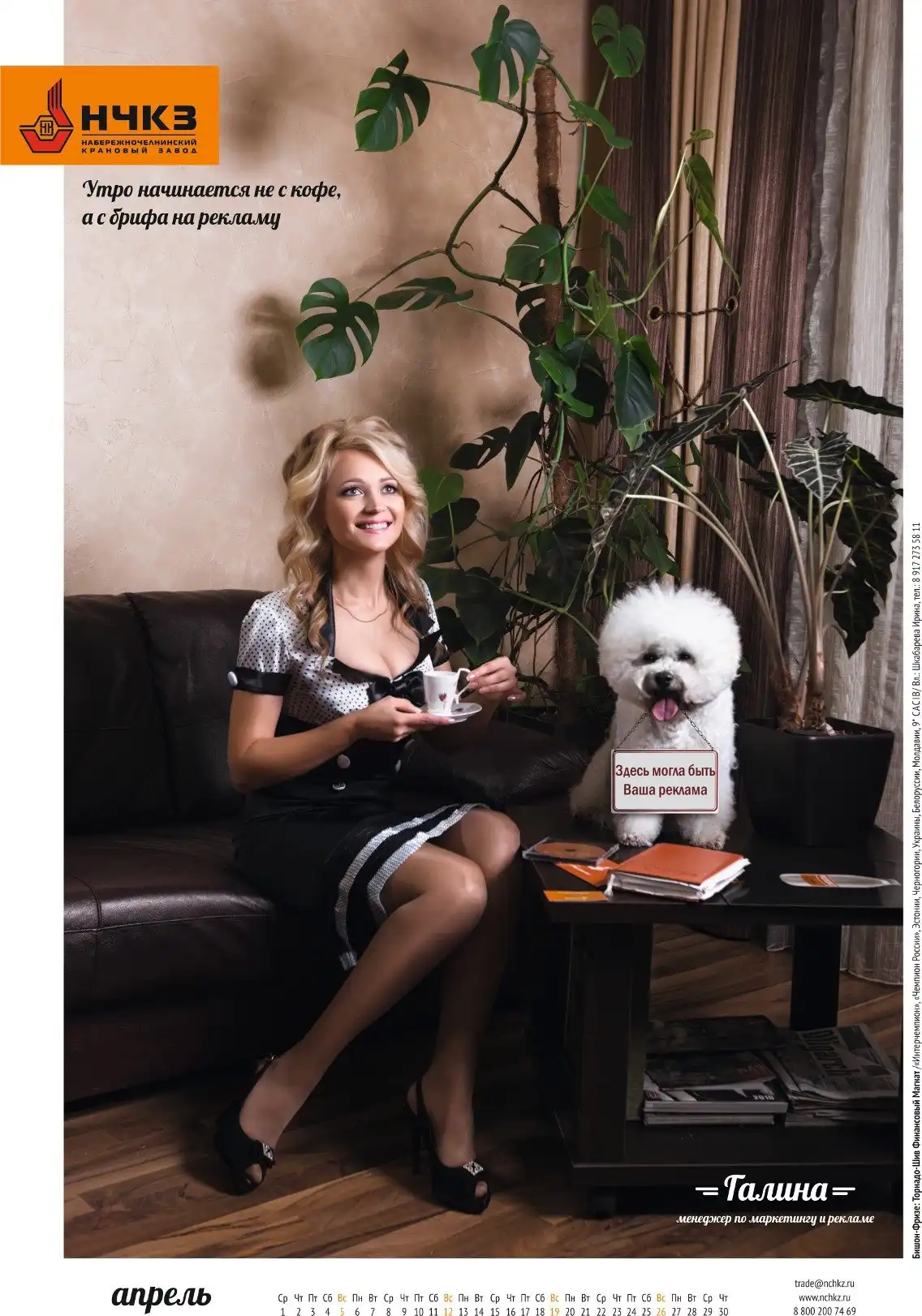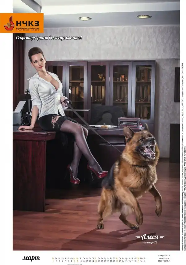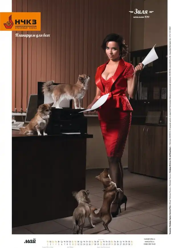 Вышел новый календарь Набережночелнинского кранового завода под названием "ДОГ-2015". Героями календаря по традиции стали сотрудницы компании, но уже с более откровенными фотографиями. Каждой девушке подобрали по образу свою собачку.