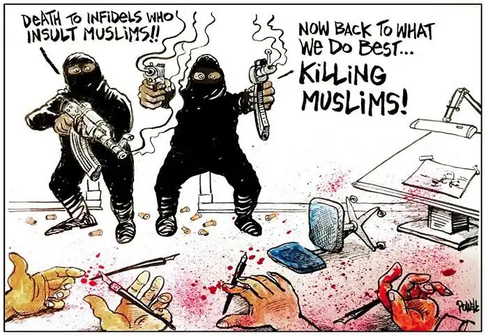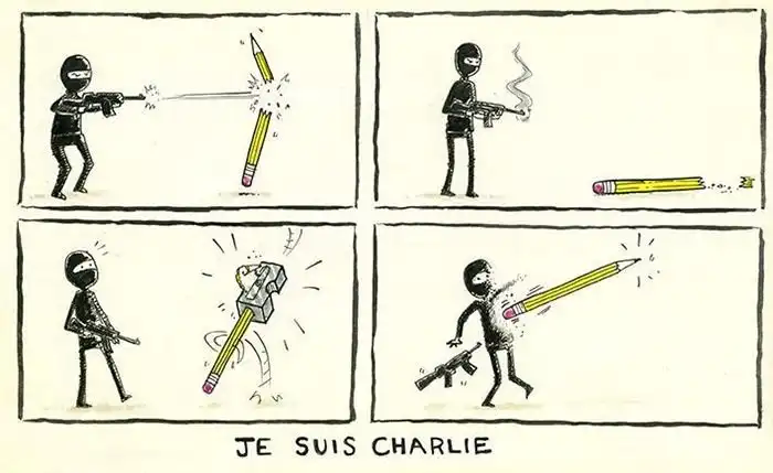 Художники, иллюстраторы и карикатуристы со всего мира отреагировали на бойню, устроенную террористами в офисе французского журнала Charlie Hebdo, порцией новых рисунков, которые уже распространились по сети. Чтобы понять смысл этих рисунков, вам даже не понадобится знание языков, так как все здесь понятно и без слов.