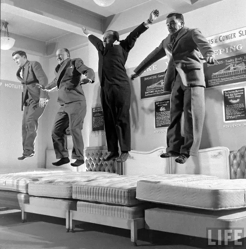 Рекламные испытания кроватей фирмы "Lewis & Conger", США 1948-й год.
