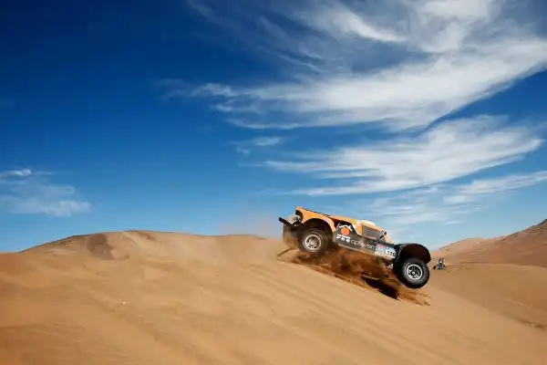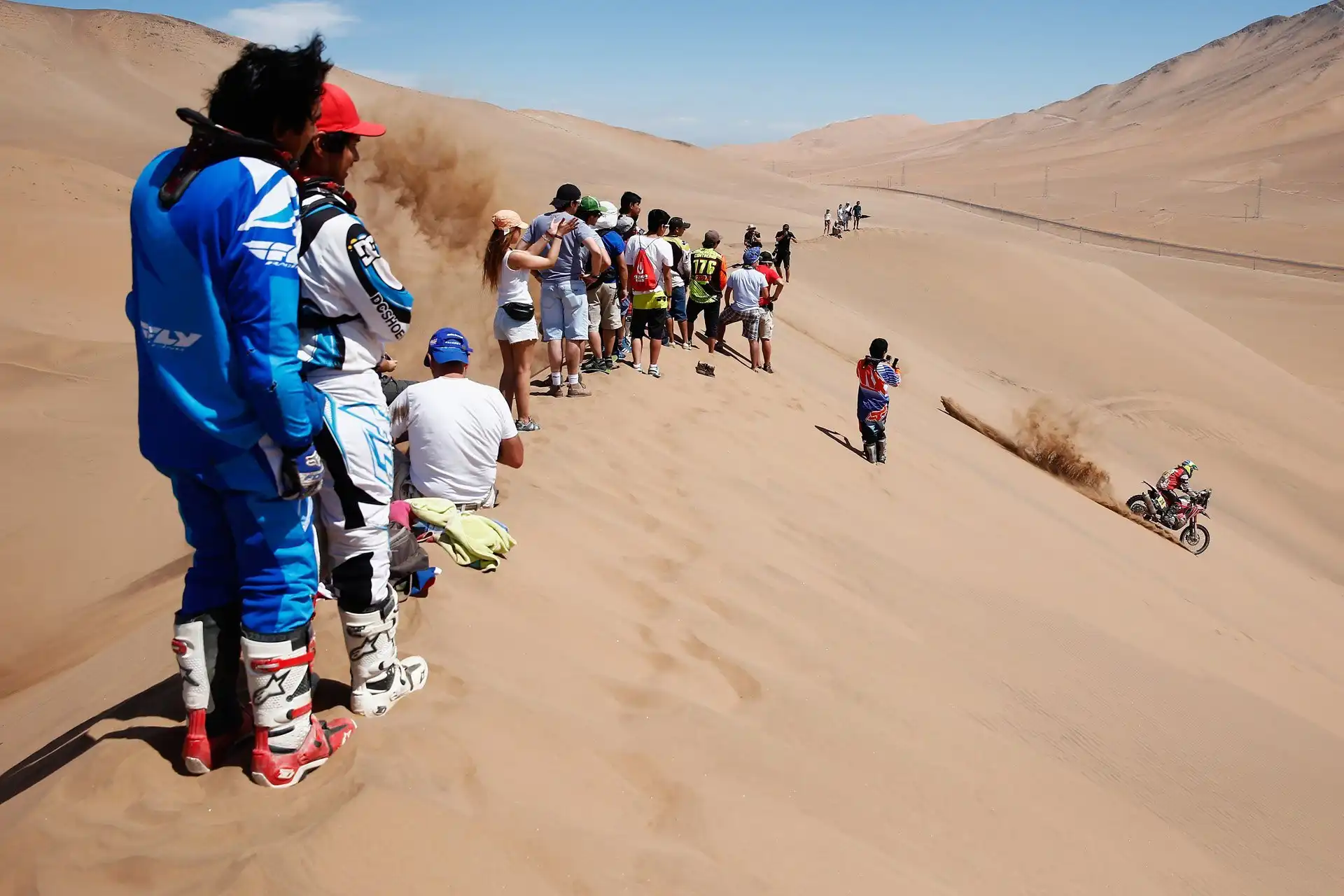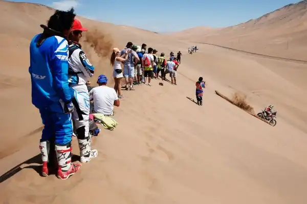 Ралли Дакар каждый год притягивают к себе миллионы внимания. Сумасшедшая скорость, борьба с песком и невыносимым пеклом делает эти гонки одни из самых захватывающих в мире. Вместе с тем это гонка также является самой тяжелой и жестокой в мире. Лишний тому пример недавняя гибель мотоциклиста. Предлагаем вам лучшие фотографии ралли Дакар-2015. Снимки сделаны во время прохождения четвертого этапа соревнований.