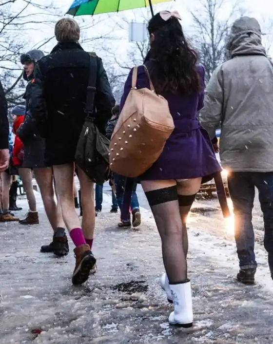 С 2012 года по инициативе движения Improv Everywhere проводится акция The No Pants Subway Ride, участники и участницы которой без штанов и юбок совершают поездки на общественном транспорте. Впервые подобная акция прошла в Нью-Йорке и быстро стала набирать популярность. В этом году данные акции должны пройти в 60 городах мира. Основная идея акции - весело провести время. Инициаторы заявляют, что это «способ весело провести время как для участников, так и для тех, кто нас увидит».