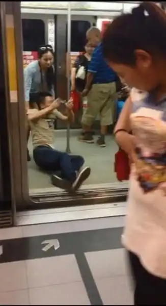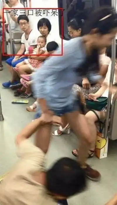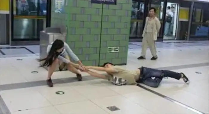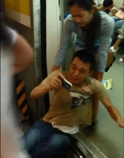 В пекинском метро один парень настолько увлекся содержимым своего смартфона, что совершенно перестал обращать внимание на свою девушку. Пару сфотографировали в тот момент, когда девушка захотела отнять мобильный телефон у своего бойфренда и при этом затащила его в вагон поезда.