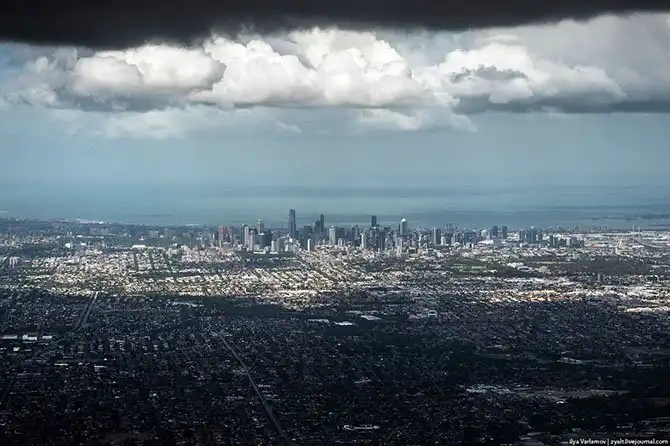 А вот и Мельбурн показался через час полета. Как видно, из иллюминатора самолета разницы почти никакой. Малоэтажная жилая застройка и небоскребы делового центра. Таким мог бы быть любой город США. Но мы с вами в Австралии.