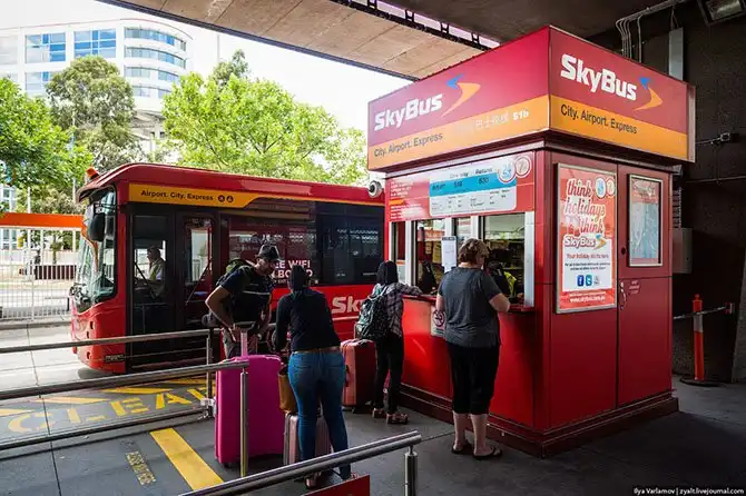 В Мельбурне до города нет поезда! Только такси или автобусы. Это плохо, так как можно попасть в пробку и потерять несколько часов по пути. Автобусы дорогие: экспресс до центра города стоит 18 долларов в одну сторону (30 в обе стороны).