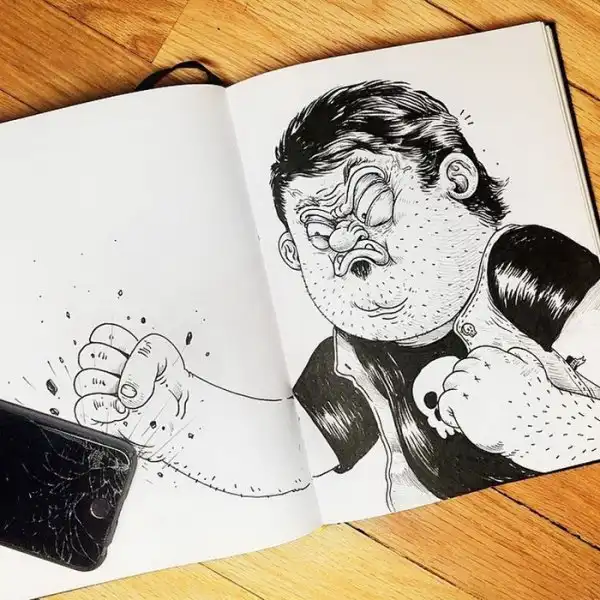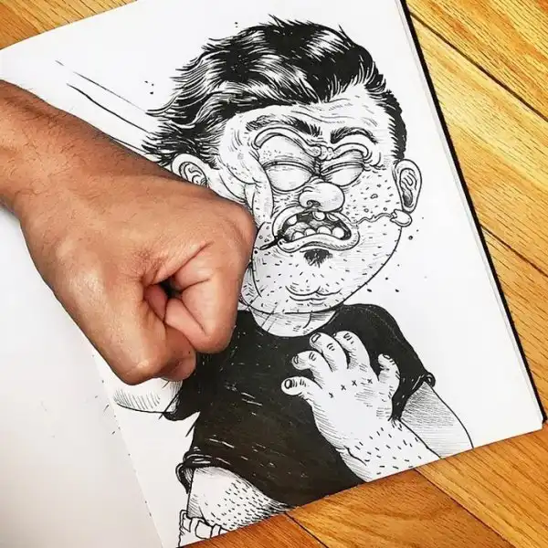 Алекс Солис (Alex Solis) нарисовал взаимодействие персонажа с реальным миром в виде своей руки и смартфона. Проект имеет название Inkteraction (Ink — чернила, Interaction — взаимодействие).