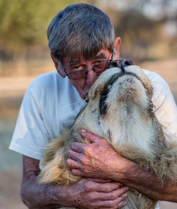 Пожилой 69-летний мужчина Фрикки Вон Солмс (Frikkie Von Solms), живущий в Южной Африке, вырастил настоящего льва. Вот уже 11 лет хищная кошка живет с этим человеком, заменившим ему мать.