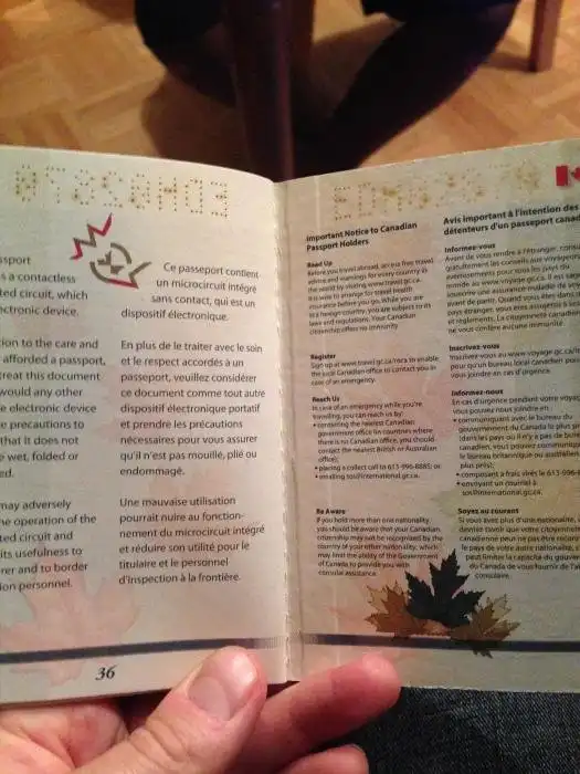 Новый паспорт гражданина Канады в свете ультрафиолета