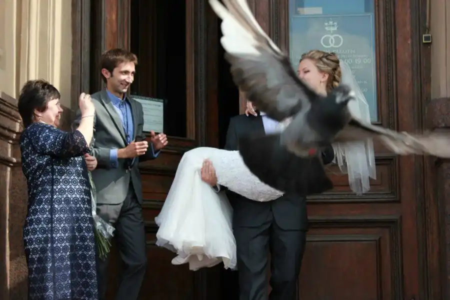 Мы привыкли винить в неудавшихся свадебных фотографиях криворуких горе-фотографов, однако порой сами молодожены создают "уникальные" фотографии, которые потом хочется забросить в дальний угол кладовки.