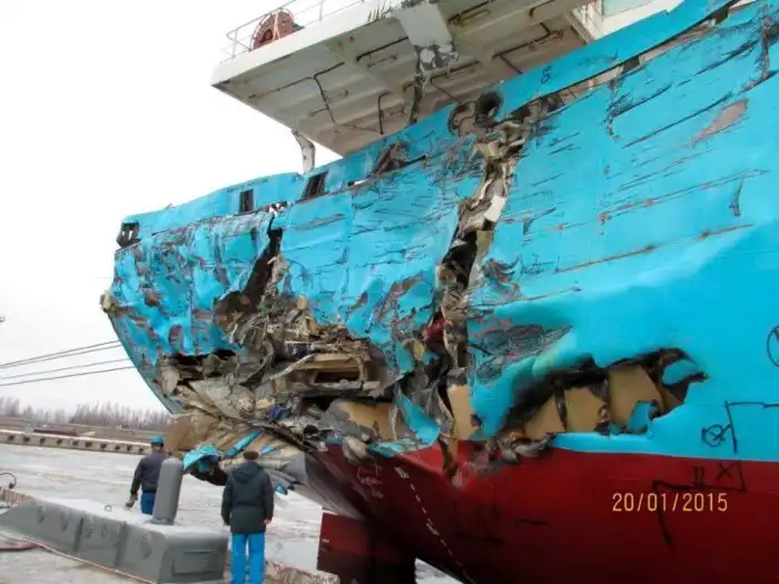 Coral Opal получит течь и был отправлен в Вентспилсский порт, в то время как Maersk Etienne продолжил движение порт Риги.
