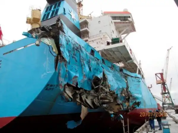 ЧП произошло в ночь на понедельник возле маяка Микельбака. Датское судно Maersk Etienne и панамское судно Coral Opal не смогли разойтись друг с другом и столкнулись.