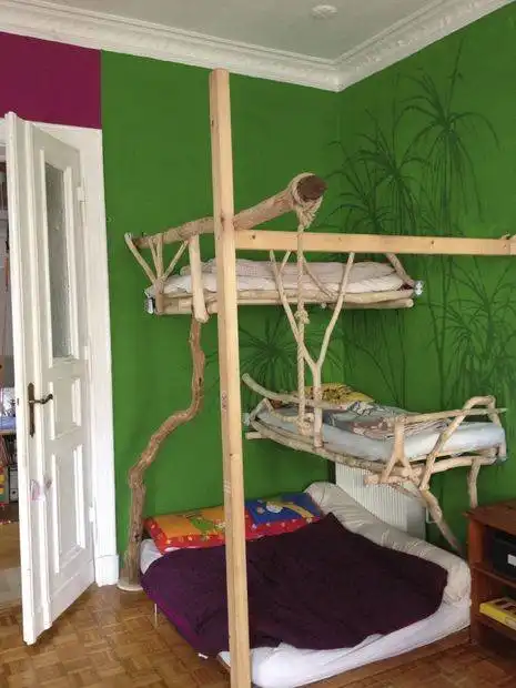 Для своих сыновей папа решил создать необычную двухъярусную кровать, похожую на домик на дереве. Все началось с похода в лес...
