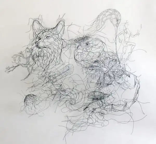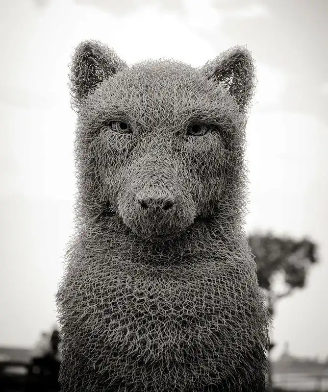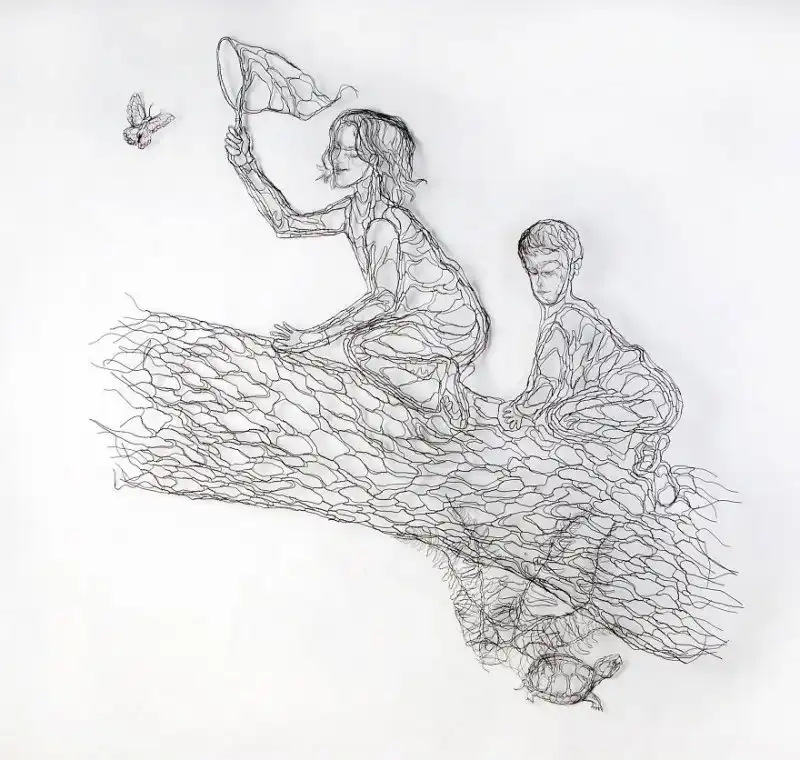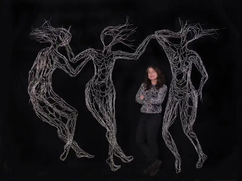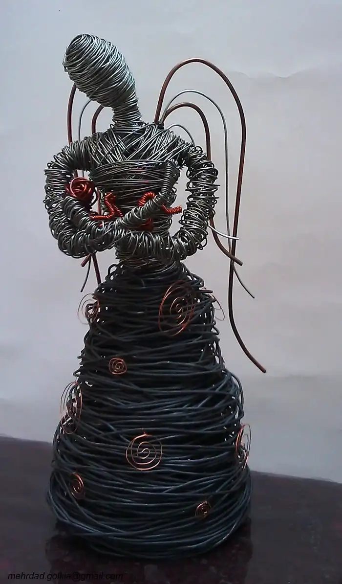 В скульптуре прочно завоевали место провода. И это неудивительно, металл вообще хорош для скульптуры, а провода, как линия графита, рисуют объем. Это рисунок в пространстве, который виден весь, сразу, и нет в глубине плотного материала, а видны тени и выпуклости, добавляя работам выразительности.