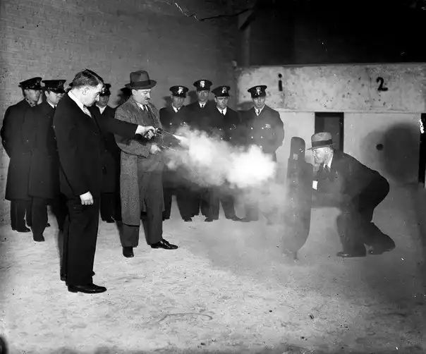 Изобретатель пуленепробиваемого щита прячется за своей разработкой.