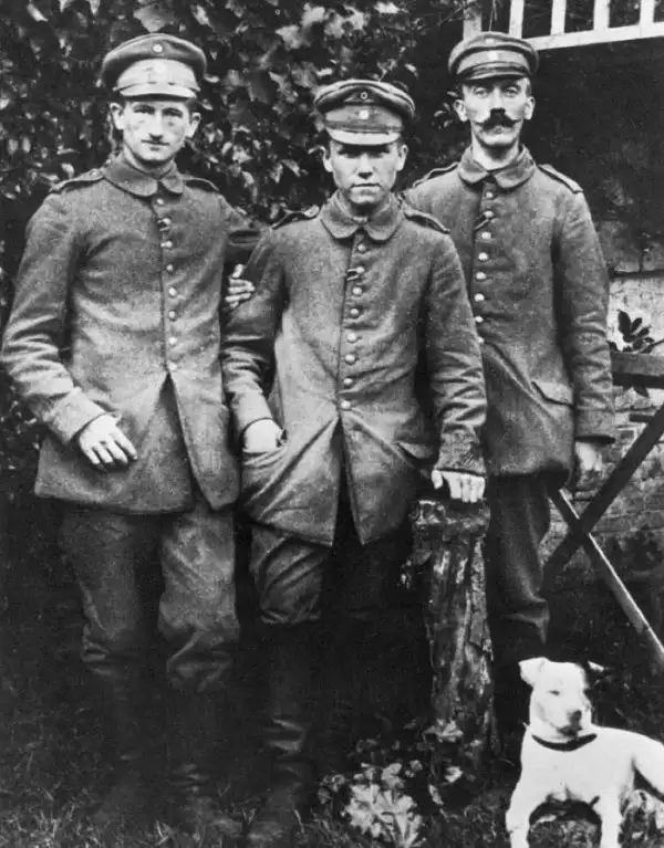 Справа с хипстерскими усами сам Адольф Гитлер. Фото примерно 1916-19.